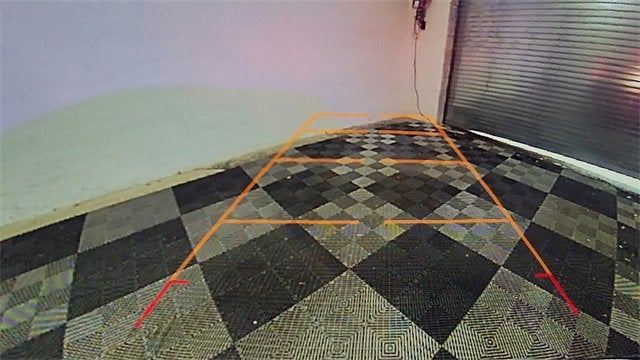 - Selectable dynamic guidelines laid over the display image assist in parking maneuvers by showing the vehicle's path